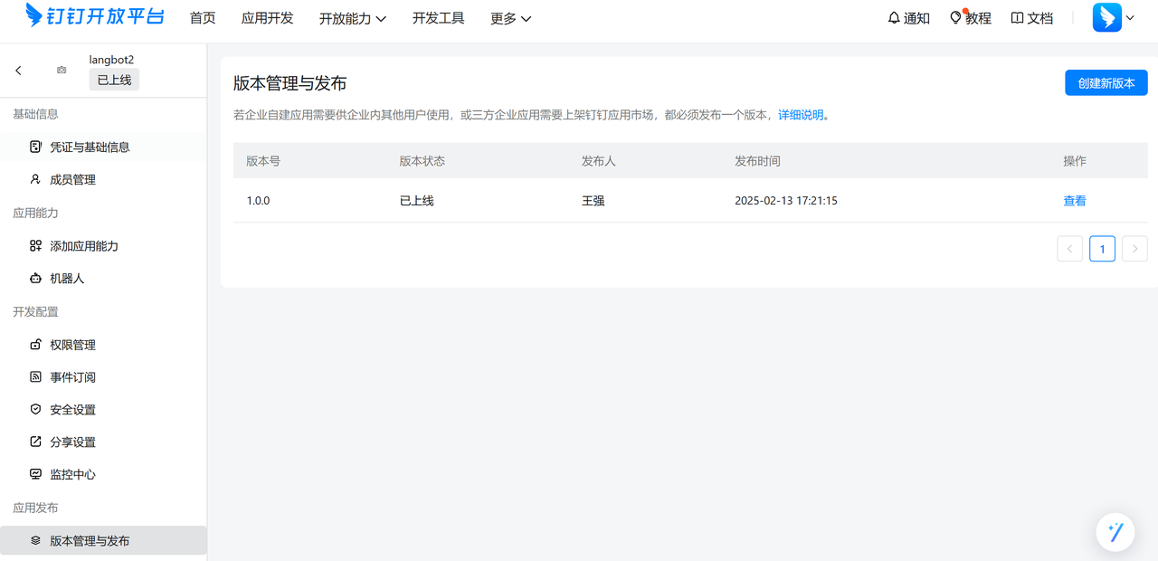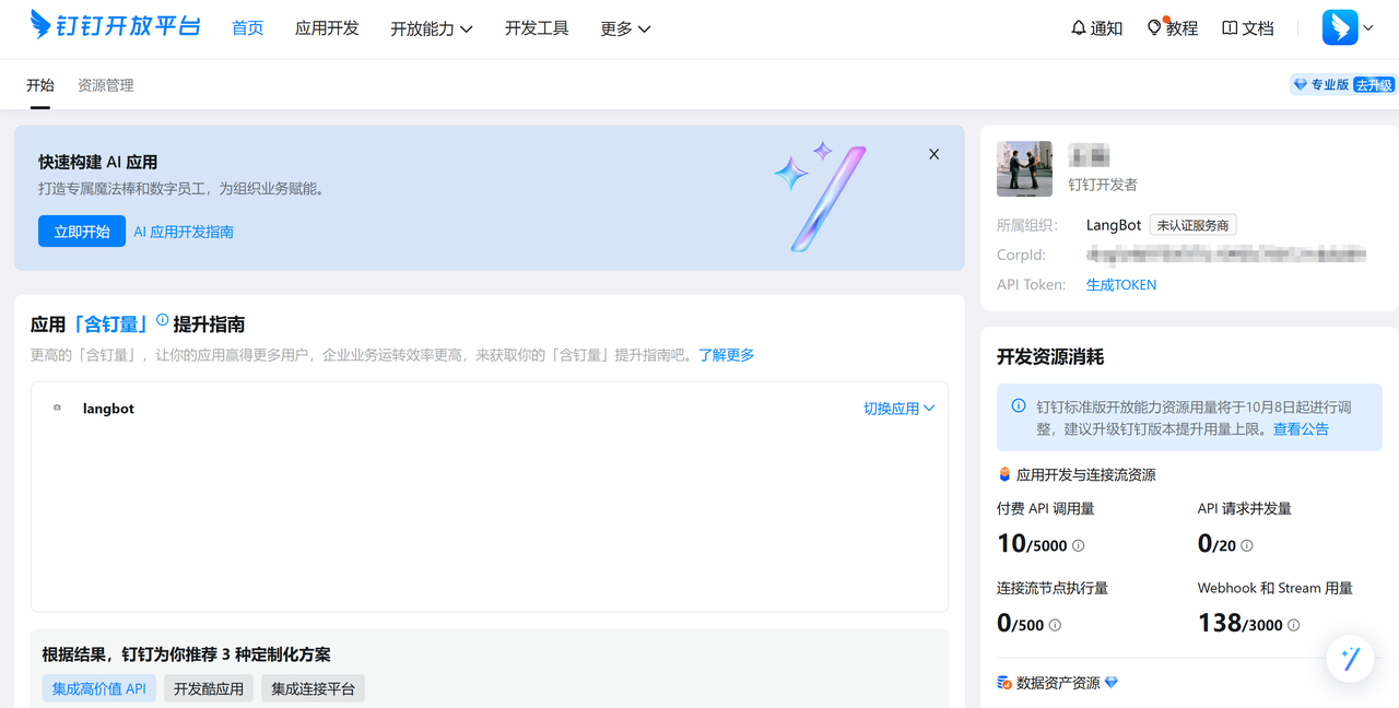 LangBot supports connecting chatbots to platforms such as QQ, WeChat Official Accounts, and Feishu (Lark). Using DingTalk as an example, here is the LangBot integration tutorial.(1) Create a Bot